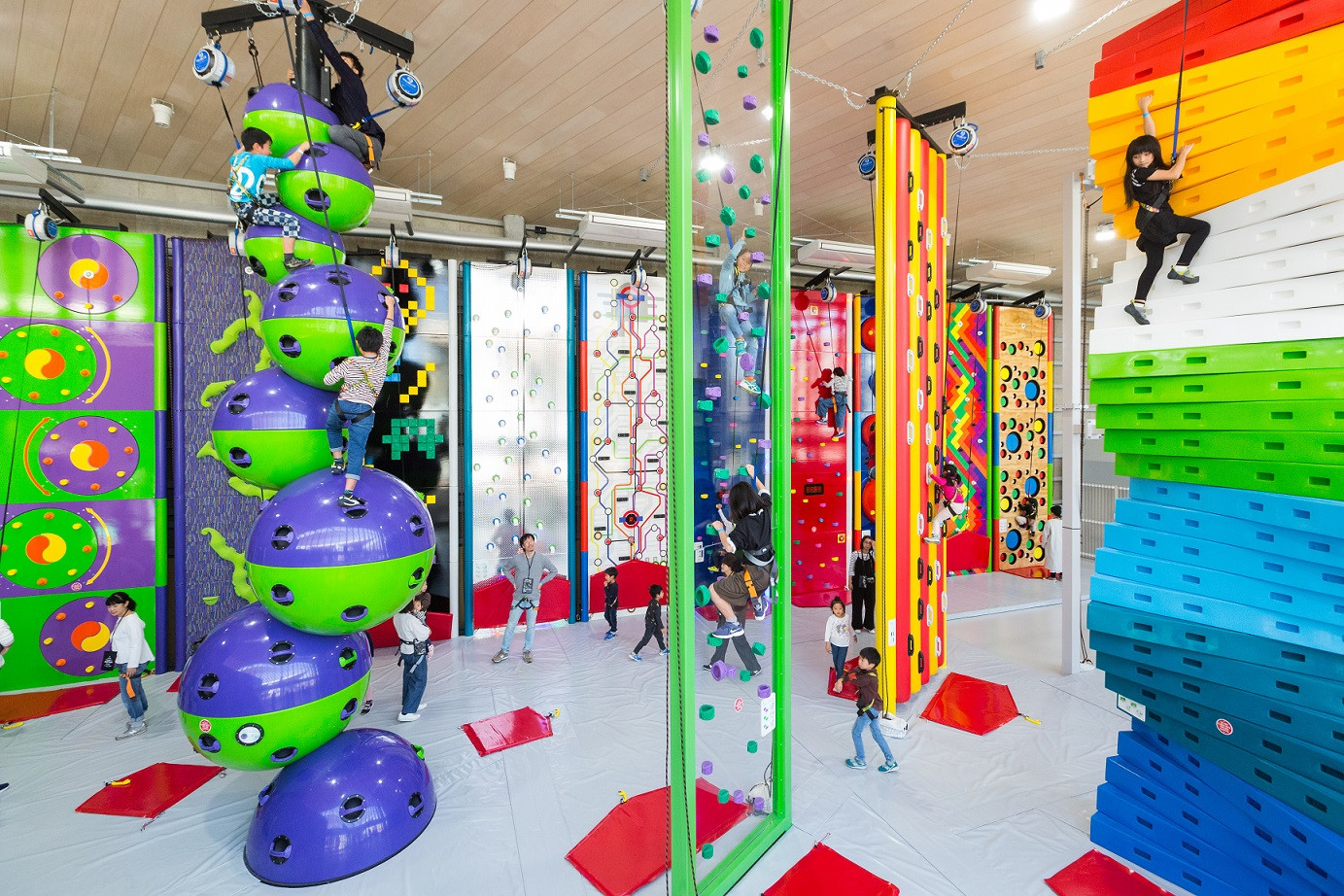 PANZAてんしばイーナは、大阪天王寺駅前にある日本最大級のインドアクライミング&アドベンチャーパークです。日本最大数を誇るインドアクライミング 『noborun! (ノボルン!)』、最大高さ8mの空中アクティビティや、ネットでできた新感覚ジャングルジムなどが体験できるアドベンチャーパーク 『sorarun!(ソラルン!) 』があります。