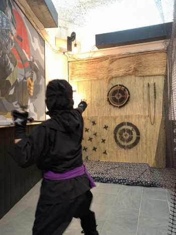 各種口コミサイトで高評価獲得、テレビ取材多数!浅草で忍者になれる、雨でも安心の屋内エンタメ施設です。忍者修業では、忍者服に身を包み、「手裏剣」「吹き矢」「刀修行」を体験いただけます(対象年齢2歳~、手裏剣にハマる大人の方も多数!)。施設のあらゆる場所がフォトスポットです。忍者服姿で沢山の写真をお撮りください。