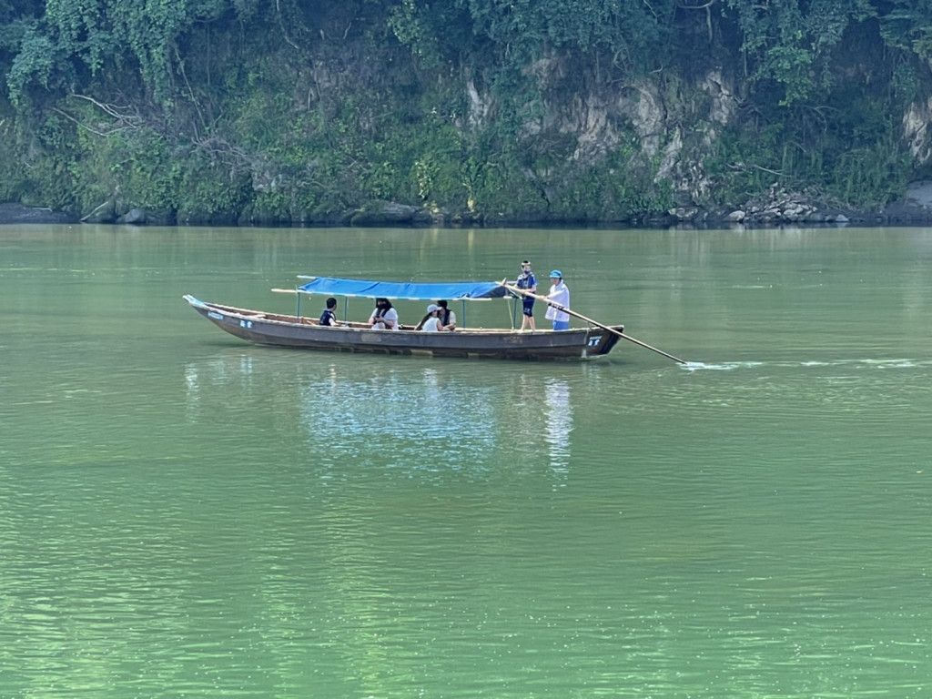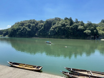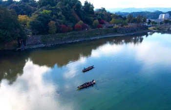 球磨川くだりの梅花(ばいか)の渡しは、船頭が川下りと同じ和船を漕いで球磨川や人吉城址を眺めながらゆったりと巡る風情ある遊覧体験です。春は桜、初夏の新緑、秋は紅葉が見どころとなり、まさに人吉の四季を感じることが出来ます。