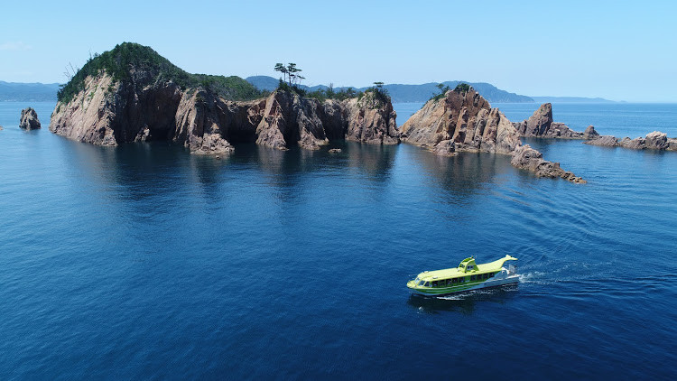 青海島は別名「海上アルプス」とも言われ、周囲には洞門や奇岩がそそり立ち、荒々しくも美しい景色が広がっています。クジラ船・イルカ船で青海島の迫力ある海景を船上から望みます。