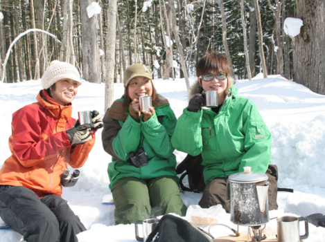 雪に閉ざされた森の奥へ自然ガイドが案内します。