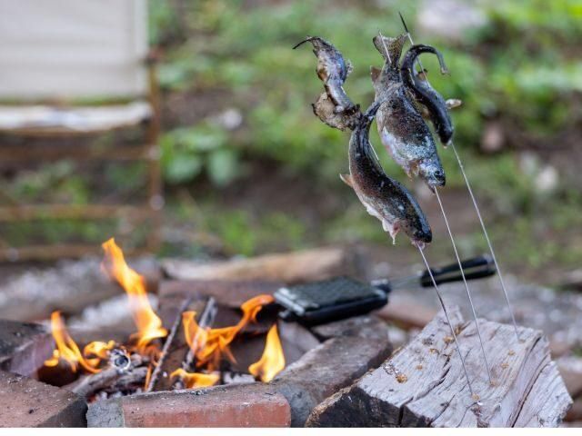 釣れた魚は施設に持ち帰り、炭火で焼いてお召し上がりいただくことも可能です。