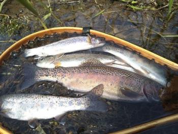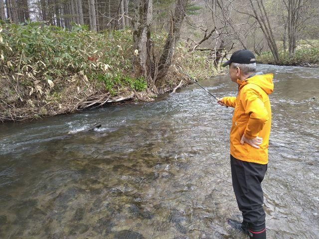 富良野近郊の川では、ニジマスやイワナ、オショロコマなどお魚釣りが楽しめます。エサは、イクラなのでお子様や女性でも大丈夫。