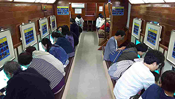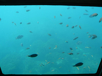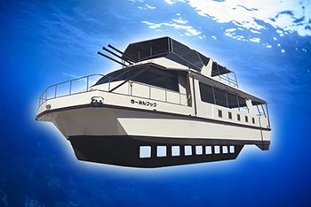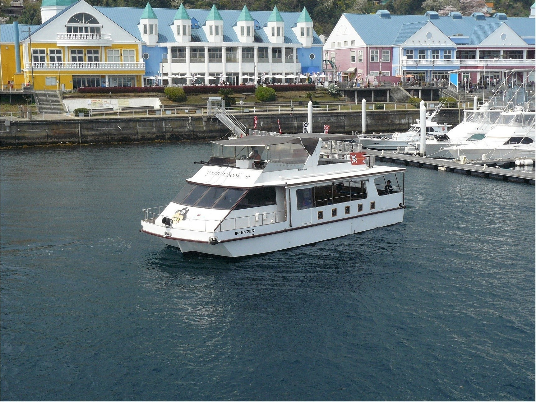 海の中がご覧いただけるグラスボート。かもめの餌付けも楽しめます。